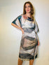 Hnepptur skyrtukjóll með fallegu flöskugrænu og lituðu munstri.